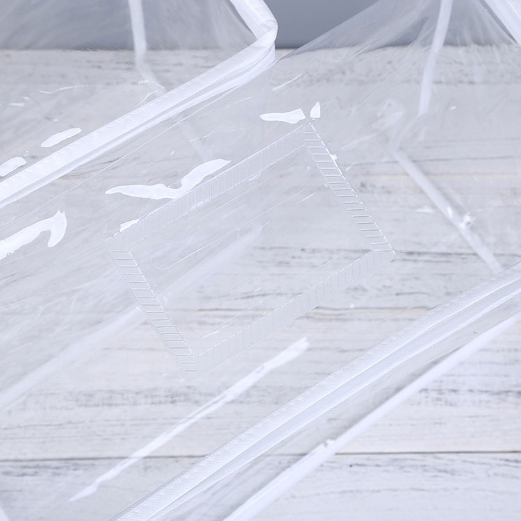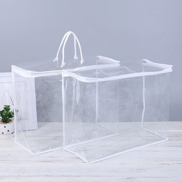 Ci sono due stili diBorsa per organizzatore in PVC. Uno è con le maniglie e l'altra è senza maniglie. Può essere utilizzato per lo stoccaggio giornaliero a casa o per articoli confezionati in negozi o prodotti tenuti in fabbriche. Puoi vedere chiaramente il contenuto all'interno poiché la borsa è trasparente.