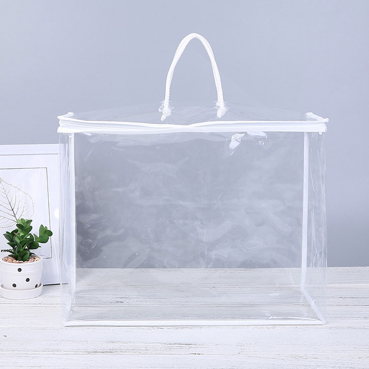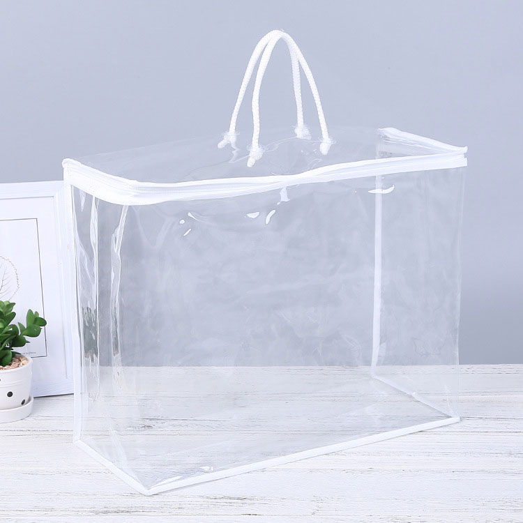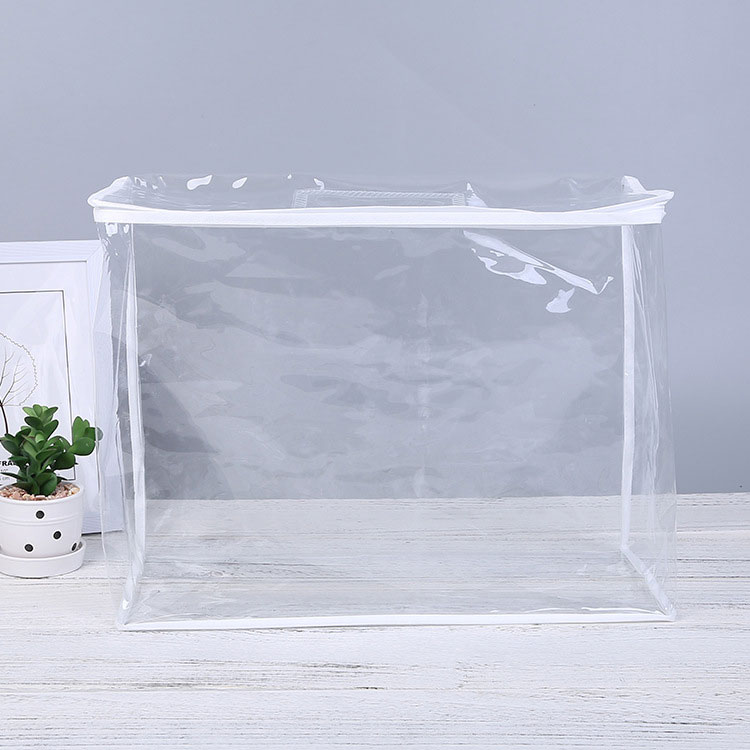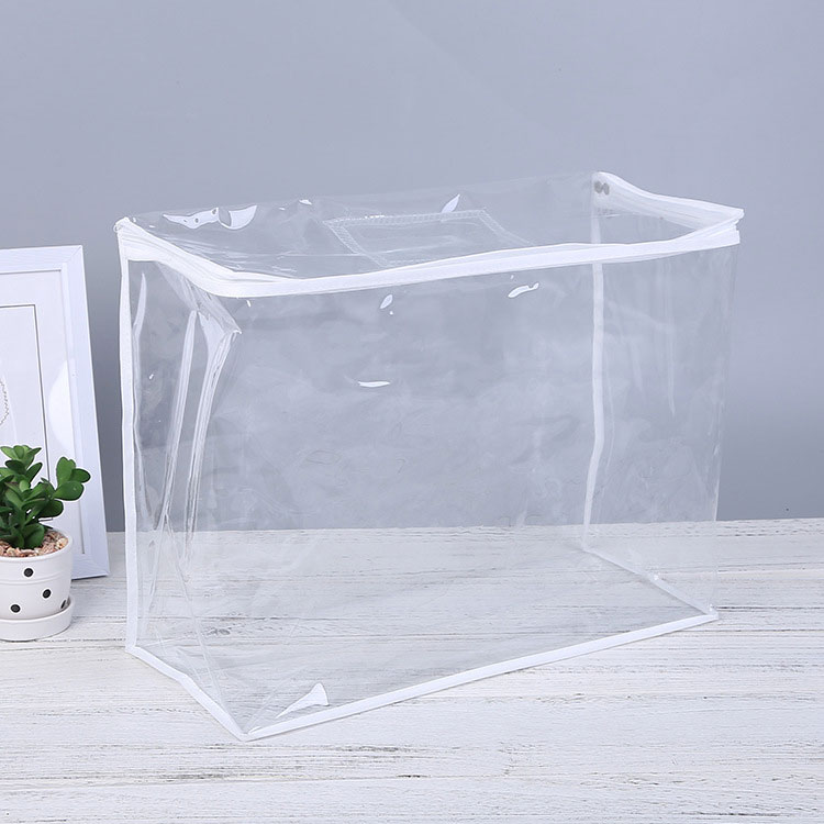 La nostra borsa per organizzatore in PVC È trasparente e realizzato dalla macchina da cucire. È molto utile per imballare la biancheria da letto. Il materiale è rispettoso dell'ambiente senza odore pungente e non tossico. È abbastanza robusto da tenere le coperte o le trapunte.
